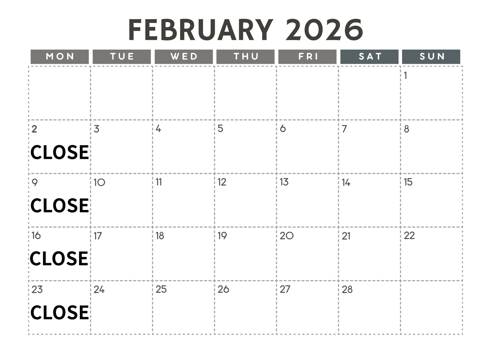 2月店休日のお知らせ